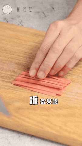 1.准备火腿,切丝备用。