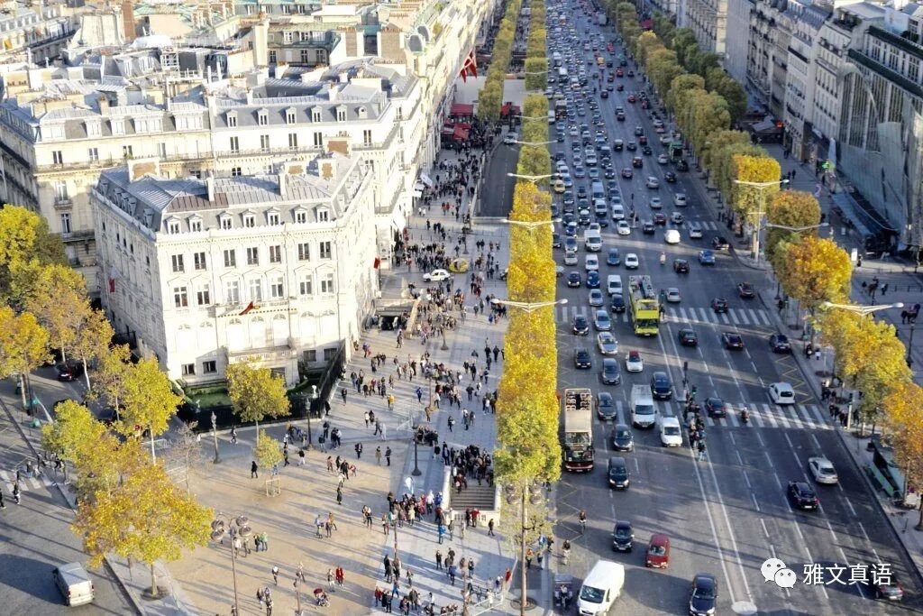 一般城市的道路都是横向和纵向呈十字形,两条道四个方向。但巴黎很多路是米字形的,或叫放射状。就是有四条道,八个方向。所以他们可能没有十字路口这个说法。