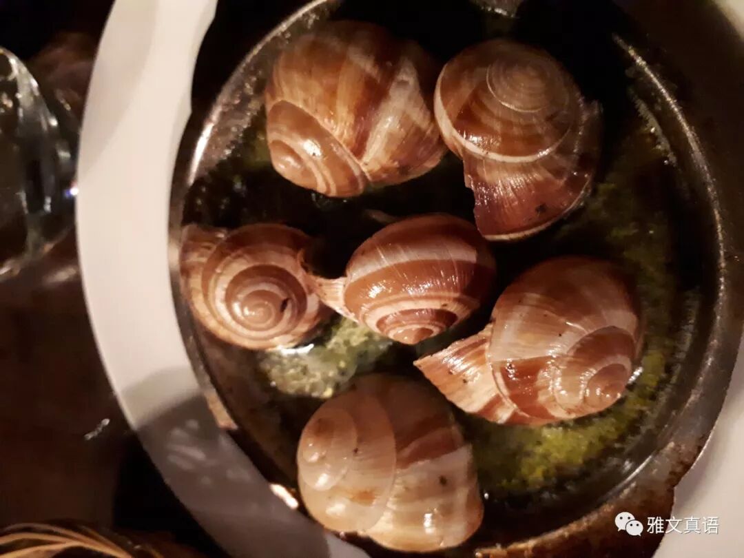 巴黎的美食世界闻名。拉丁区汇集了世界各国的菜肴。在巴黎,当然就应吃正宗法餐。蜗牛肉不可少。原来以为蜗牛肉是大餐,但在法国,就像是一种零食。你可以点一打,也可以多点,相信我,吃了会停不下来。一定要点那种有蜗牛壳的,又美味,又可爱。不过据说,即使有壳的,也是人工把肉放进去的,不知真假。很多路边小餐馆就有,可坐在路边吃,让我想起小时候吃螺丝,国内也有一些路边摊螺丝的。相似的事,但在巴黎显得更高大上。