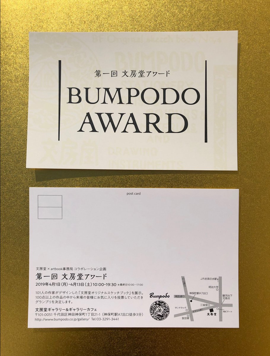 - 神田・神保町にある老舗画材店、文房堂で現在行われている「第1回文房堂アワード」展に参加しています。気持ちのいいカフェもありますので、この週末お花見がてらにあそびにいってみてください。お気に入りの作品に投票できますよ!#文房堂アワード